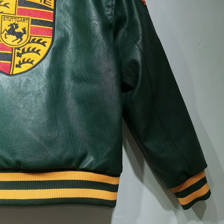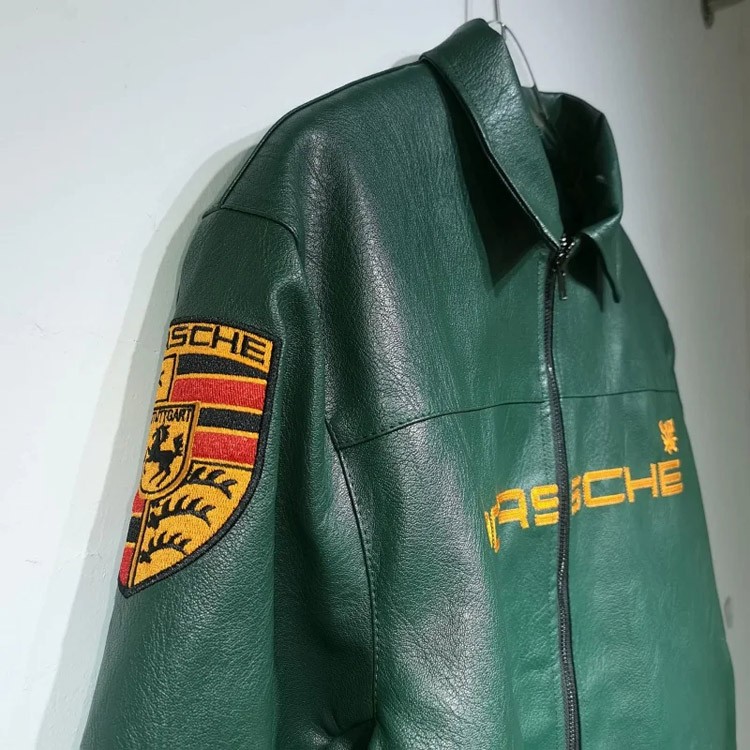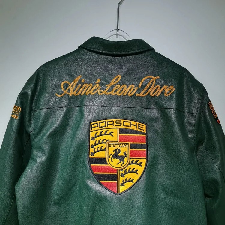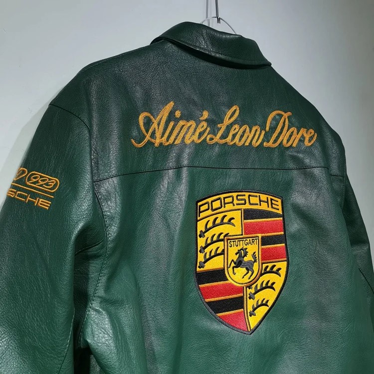Home > Aime Leon Dore x Porsche Leather Embroidered Zip-Up Ribbed Jacket-5015