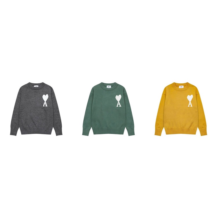 AMIPARIS Big Heart White Label Wool Crew Neck Sweater-4466