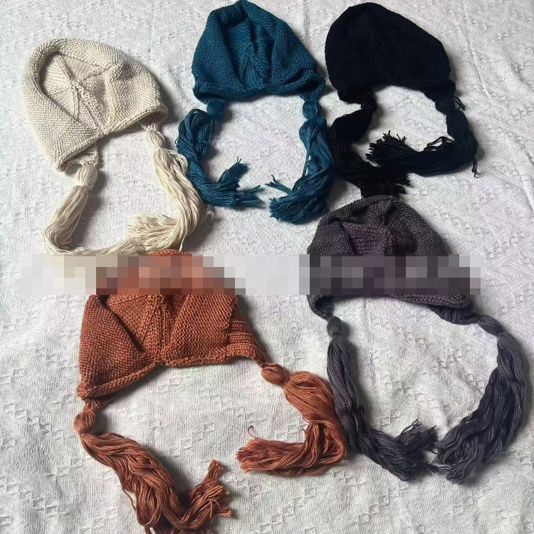 Home > Chanel solid color vintage knitted hat with tassels-5856