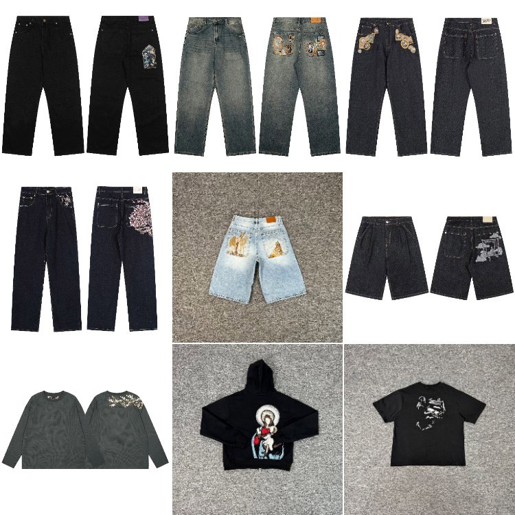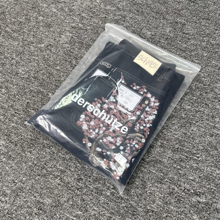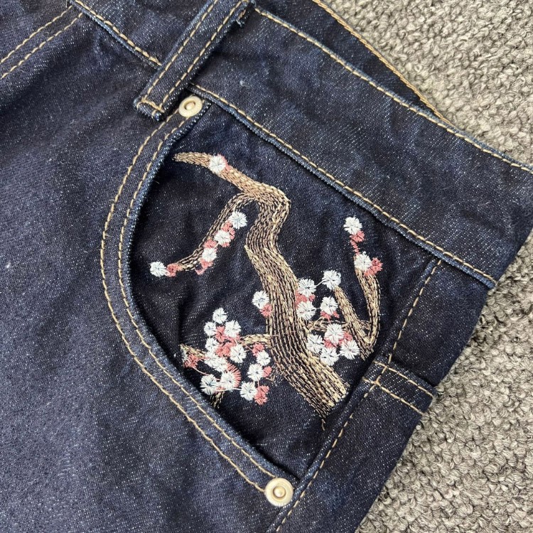 Derschutze plum blossom embroidered straight leg jeans-6043