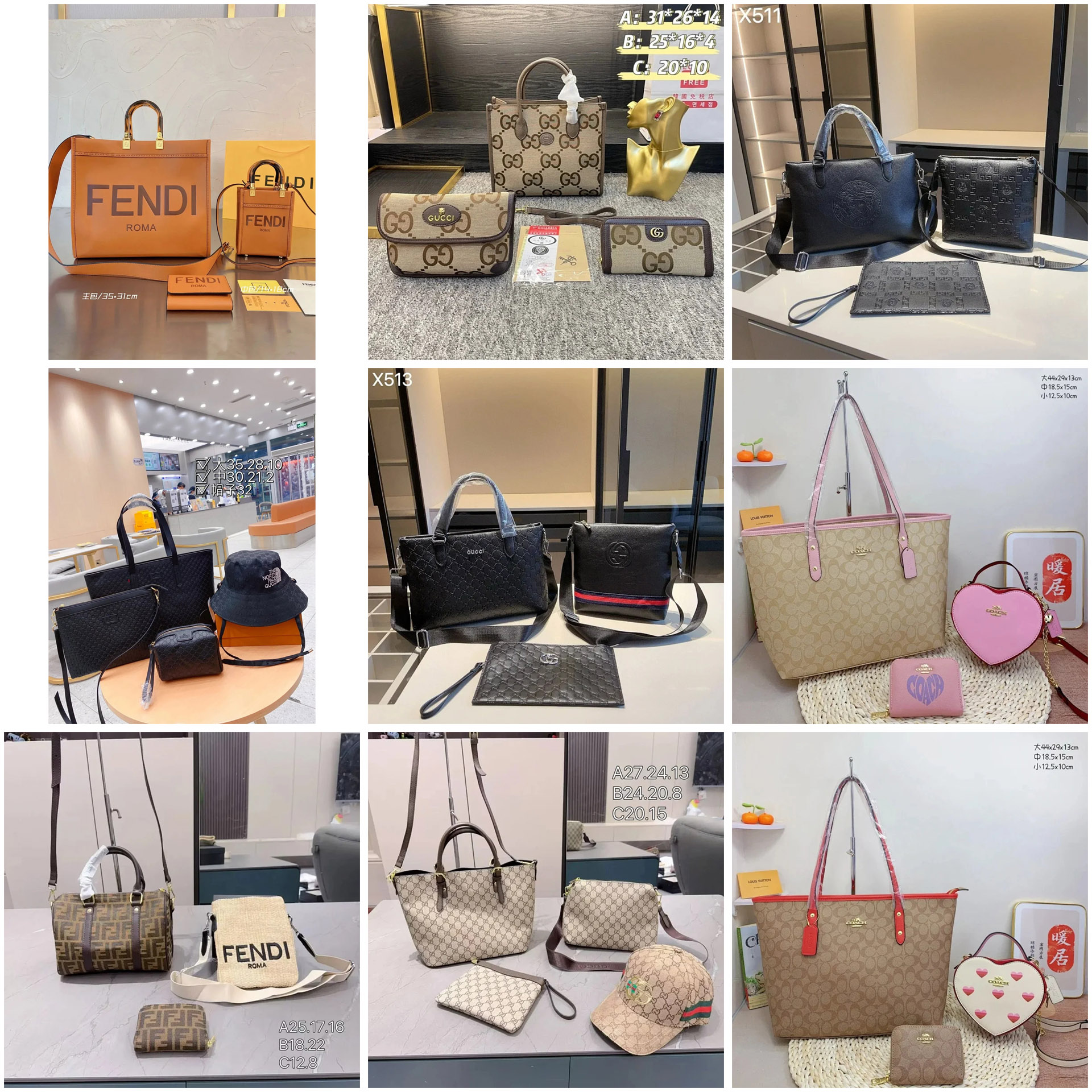 Fendi Coach Gucci three-piece handbag set-4692