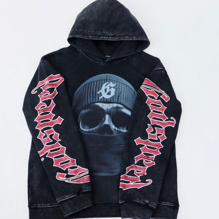 Godspeed Masked Print Washed Distressed Hooded Sweatshirt-4560