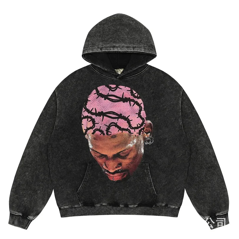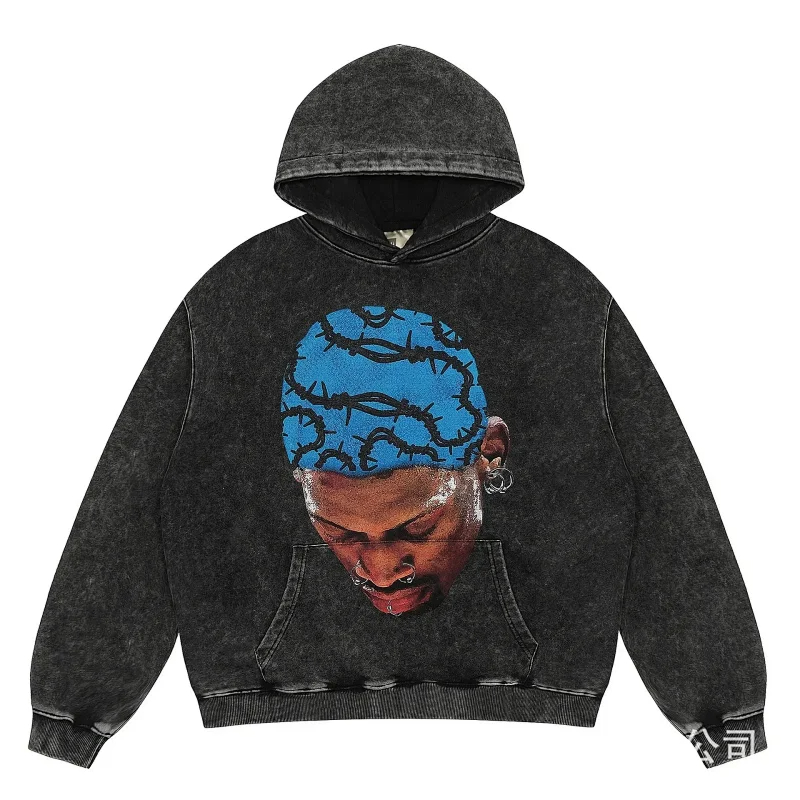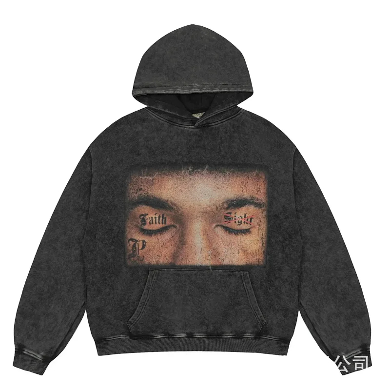 Home > KANYE I told you the same retro washed and distressed hooded sweatshirt with prints Kanye West(39 styles)-2142