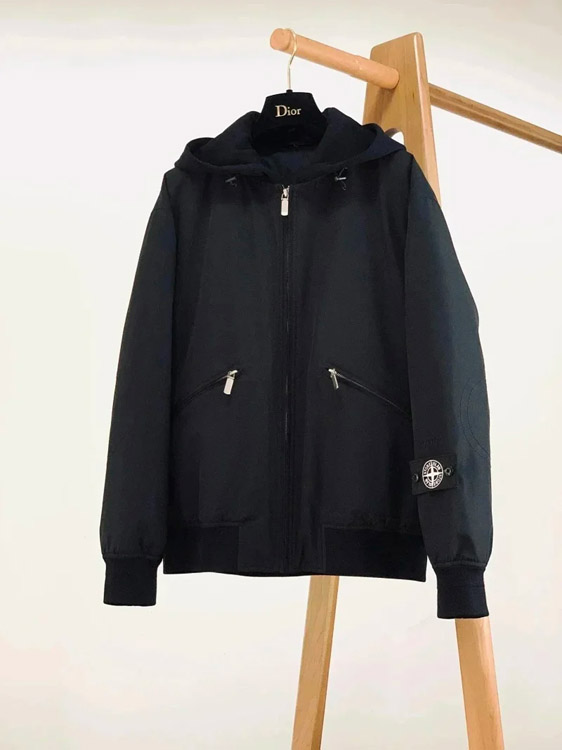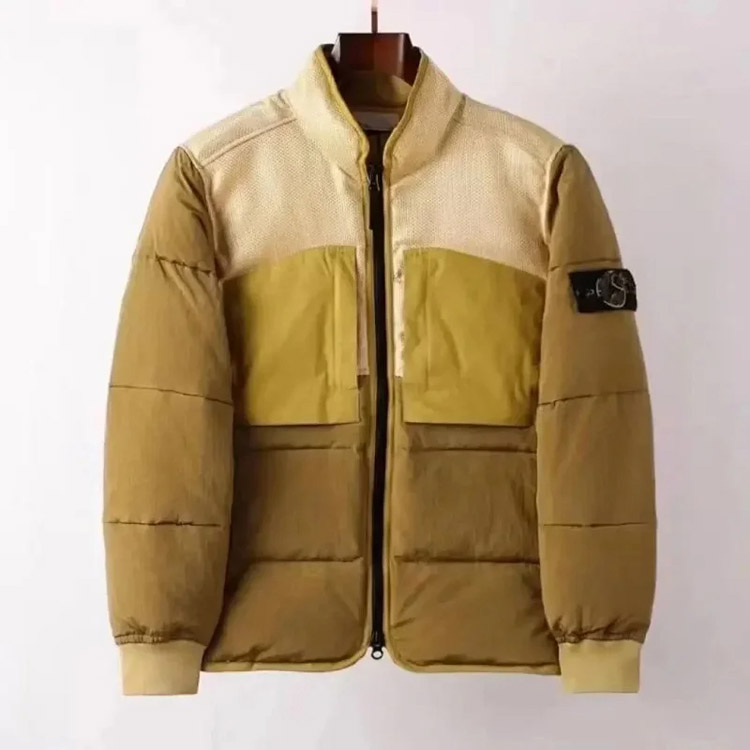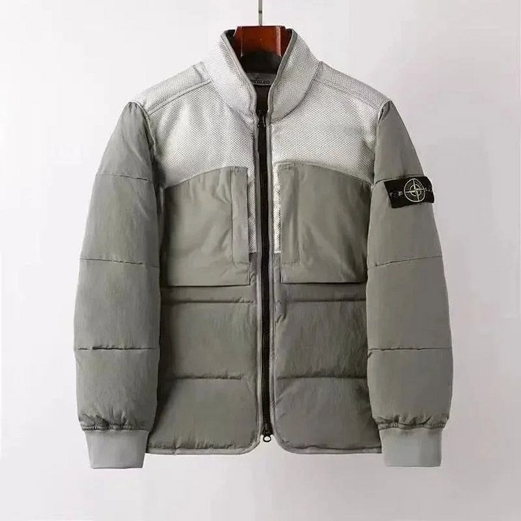 Stone Island hooded zipper stand collar patchwork design down jacket-4393