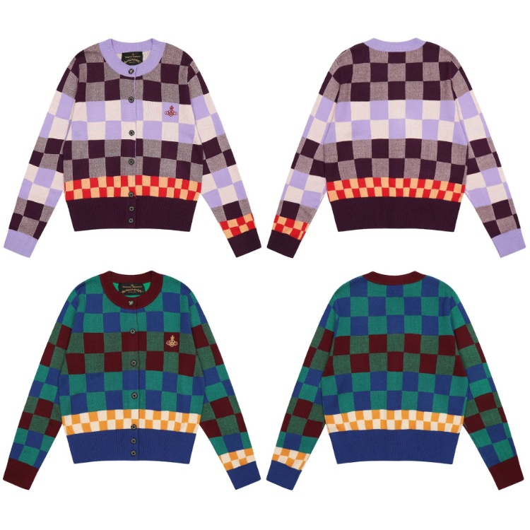 Vivienne Westwood plaid color-blocked knit crew neck sweater-6393