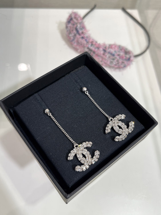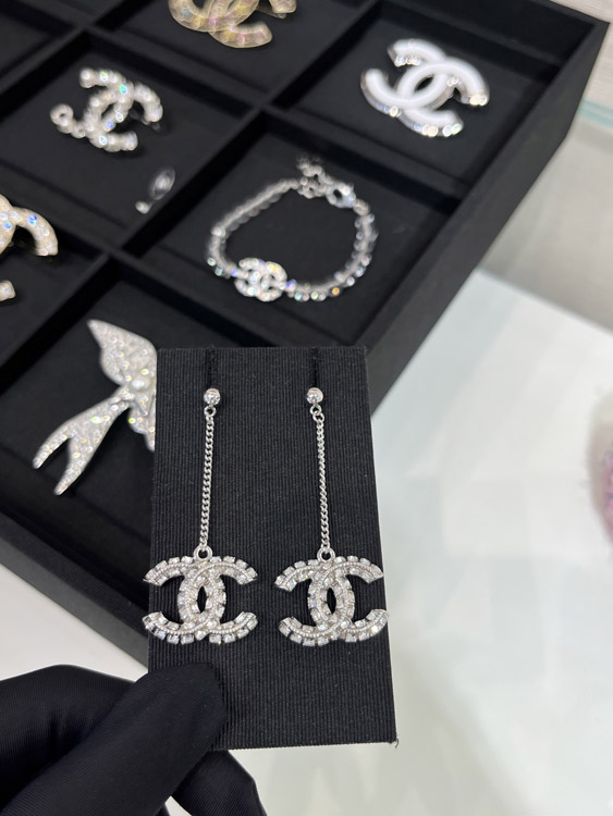 Home > Celine double-sided diamond double C pendant long chain earrings-3902