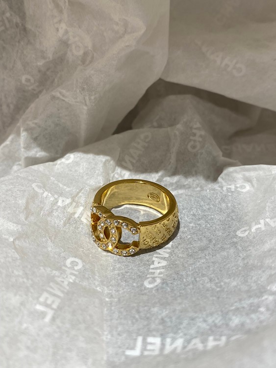 Chanel gold letter embossed double C diamond double-sided wearable ring-3591