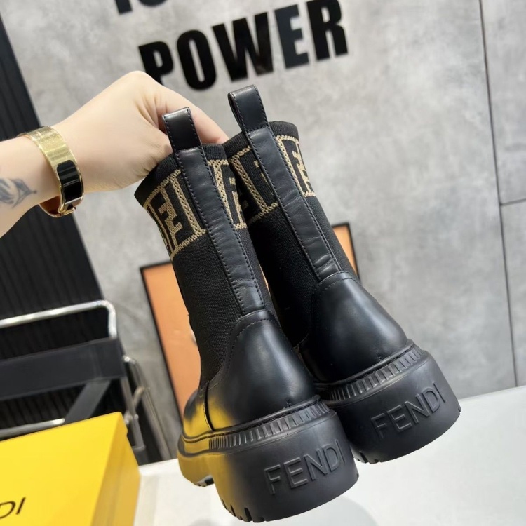 Fendi mid-calf round-toe embroidered letter combat boots-5767