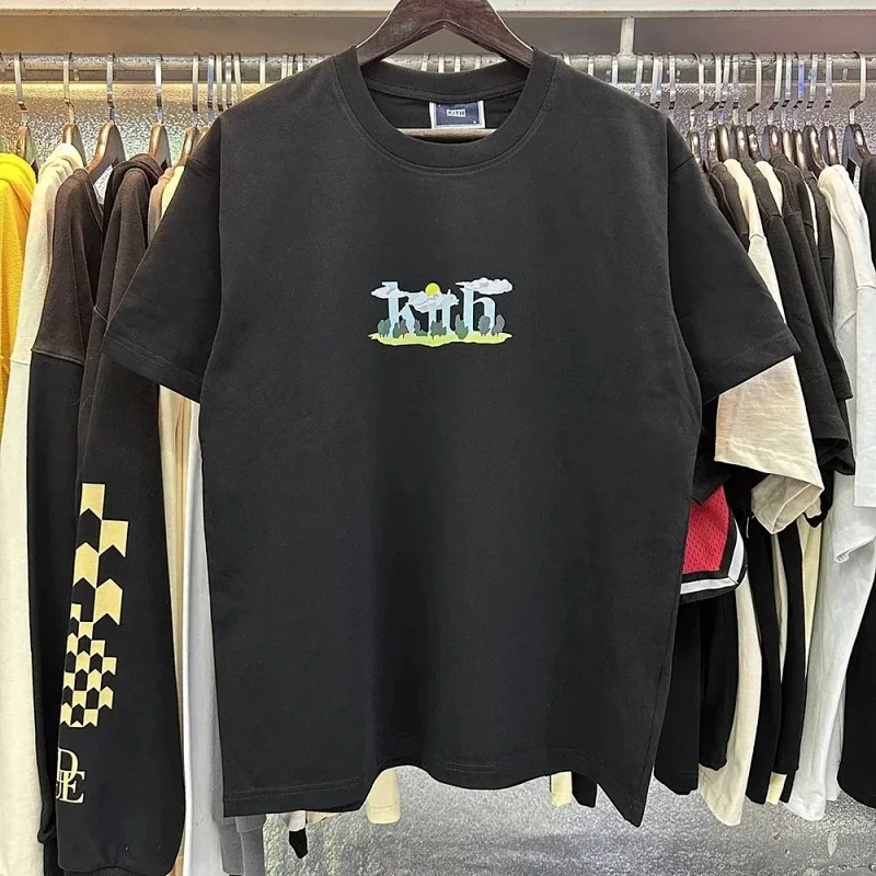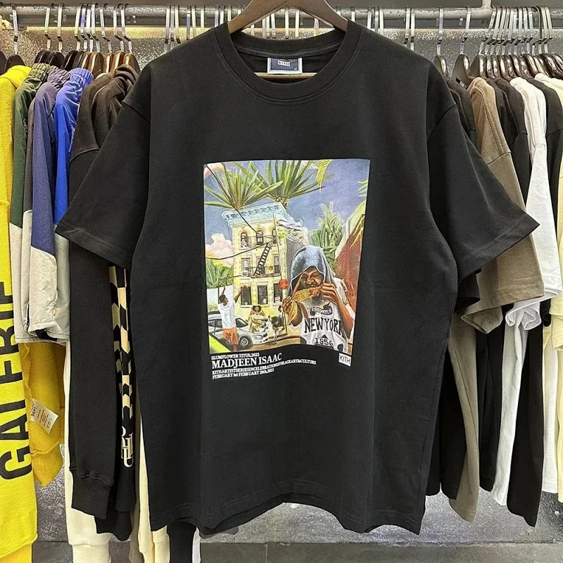 KITH High definition printed double-yarn pure cotton casual short-sleeved T-shirt for men and women-1883