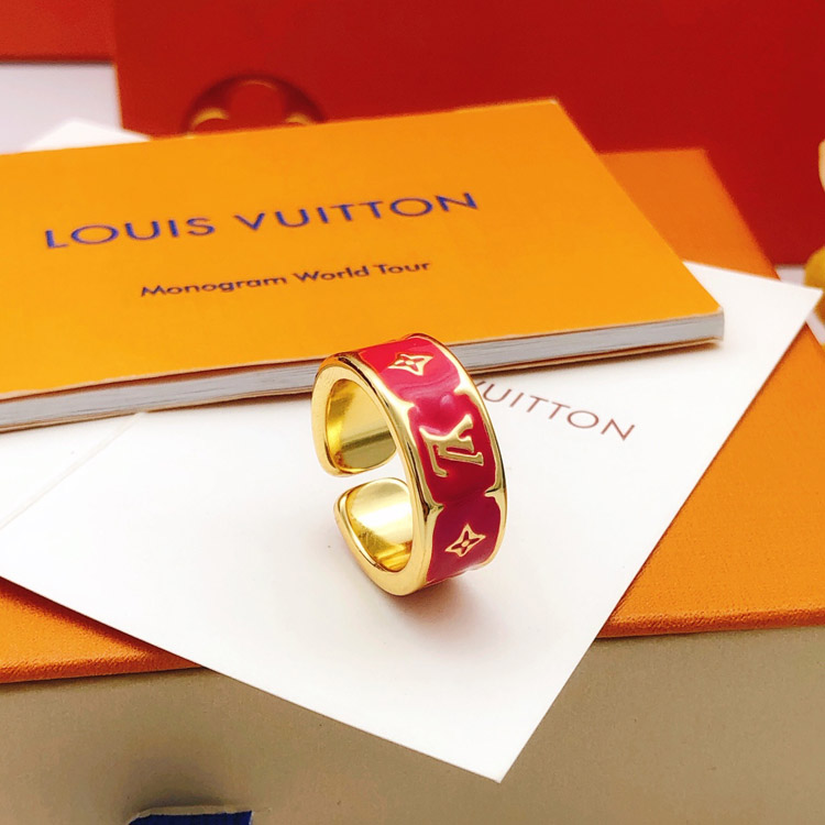 Louis Vuitton LV red oil drop letter flower ring-3875