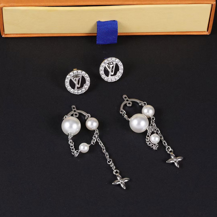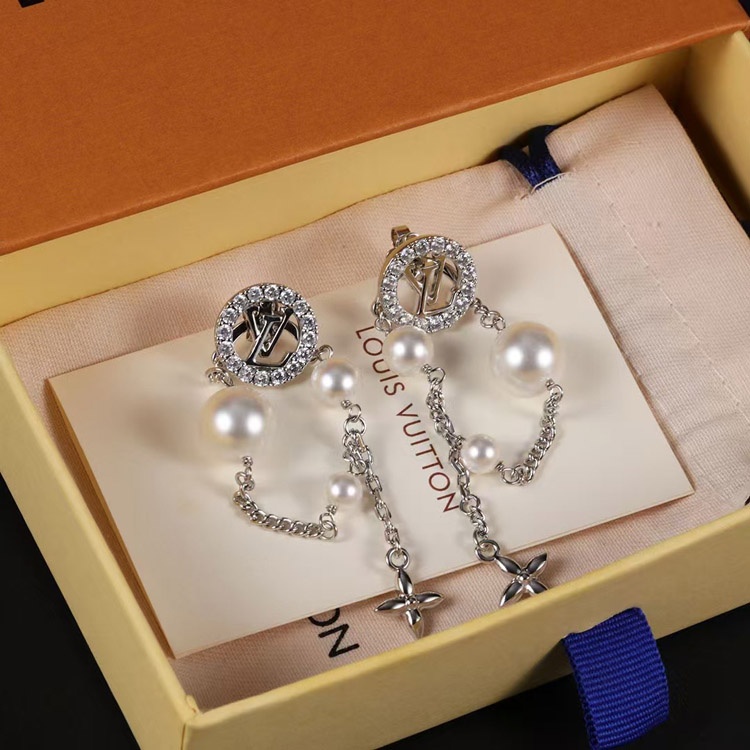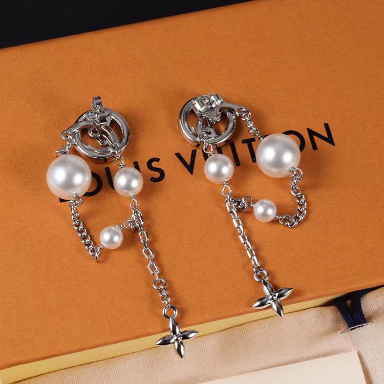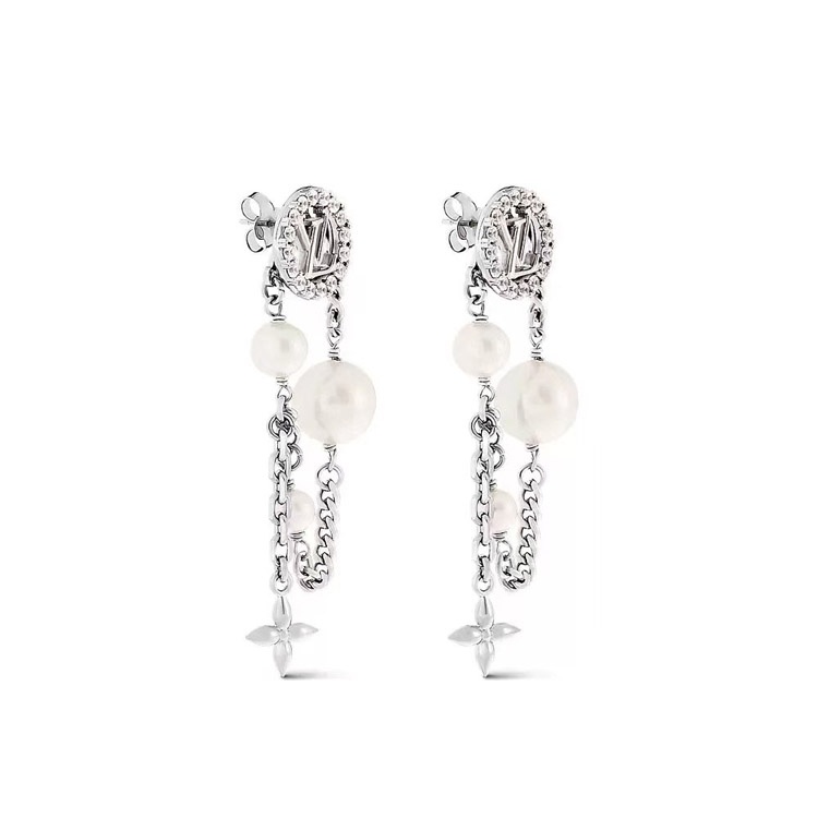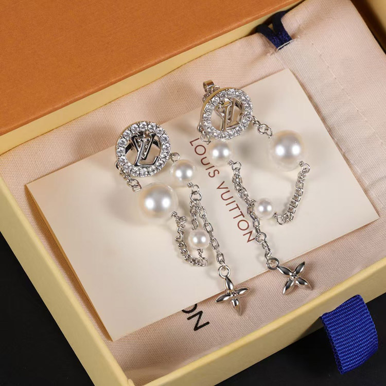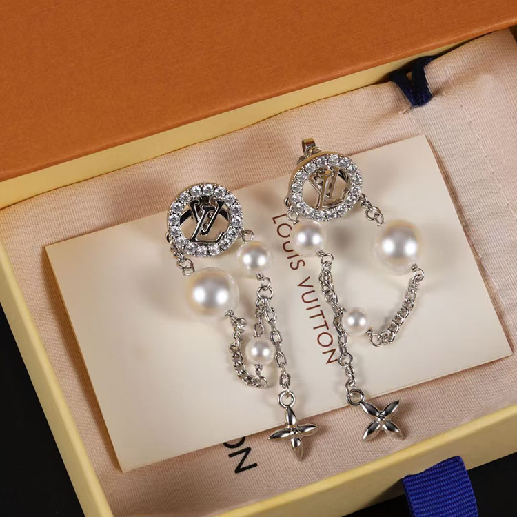 Home > Louis Vuitton LV silver letter diamond pearl tassel earrings-3865