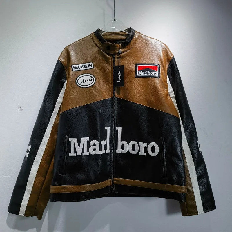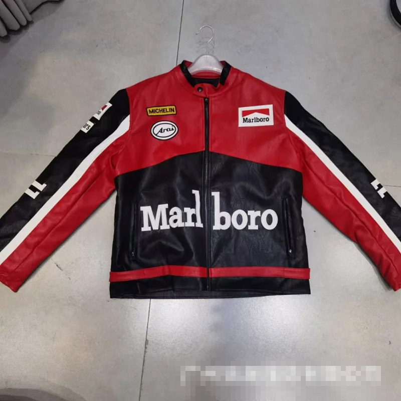 Marlboro Aime Leon Dore Leather Zipper Baseball Jersey-5517