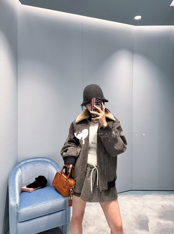 Miu Miu new vintage-style wool suit with embroidered lapel jacket-5366
