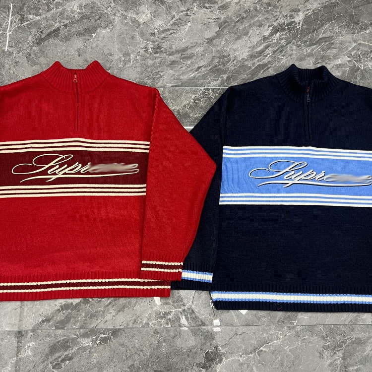 Supreme embroidered striped half-zip sweater-5929