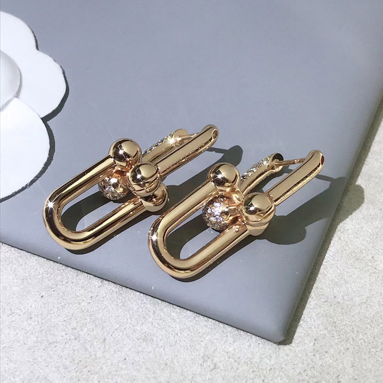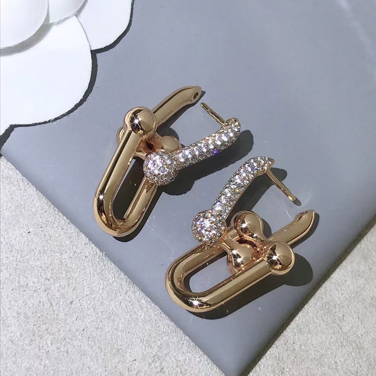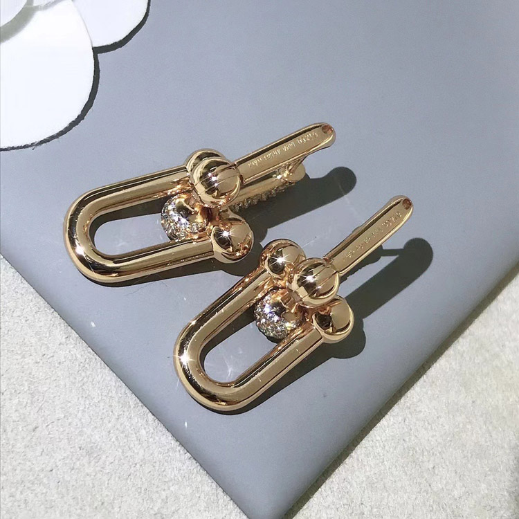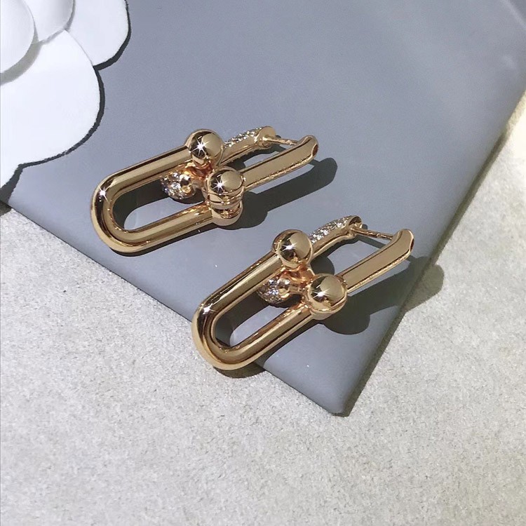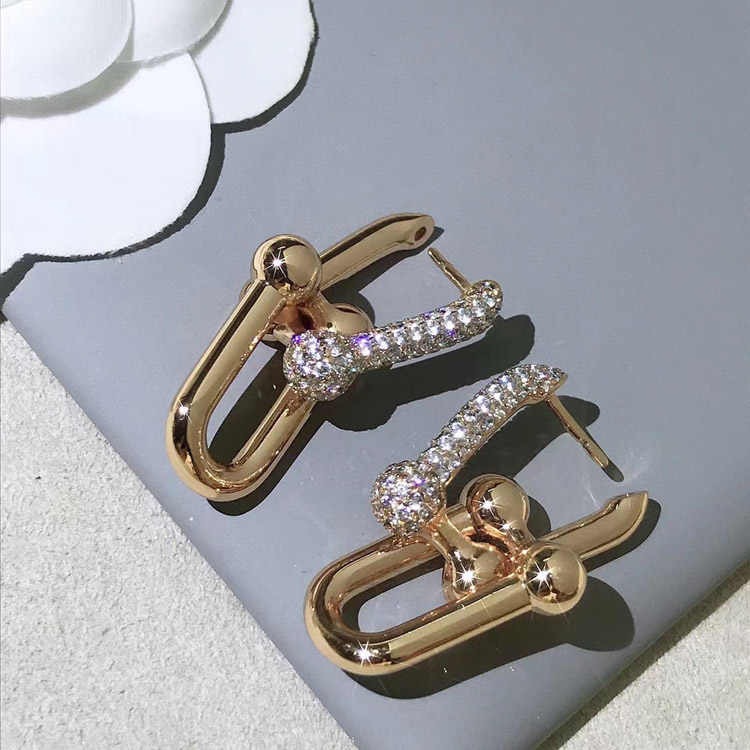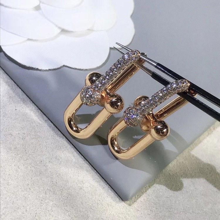 Home > Tiffany rose gold diamond double ring horseshoe buckle earrings-3678