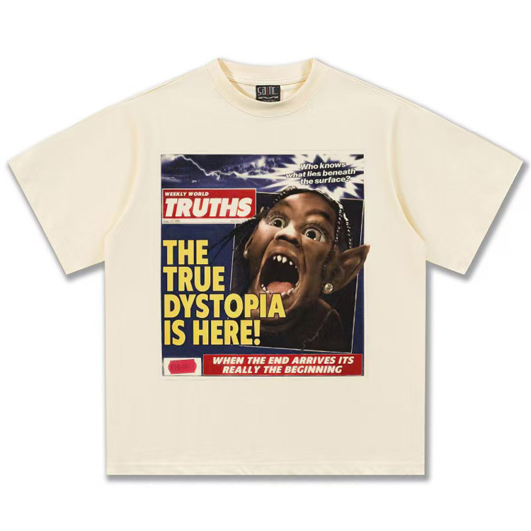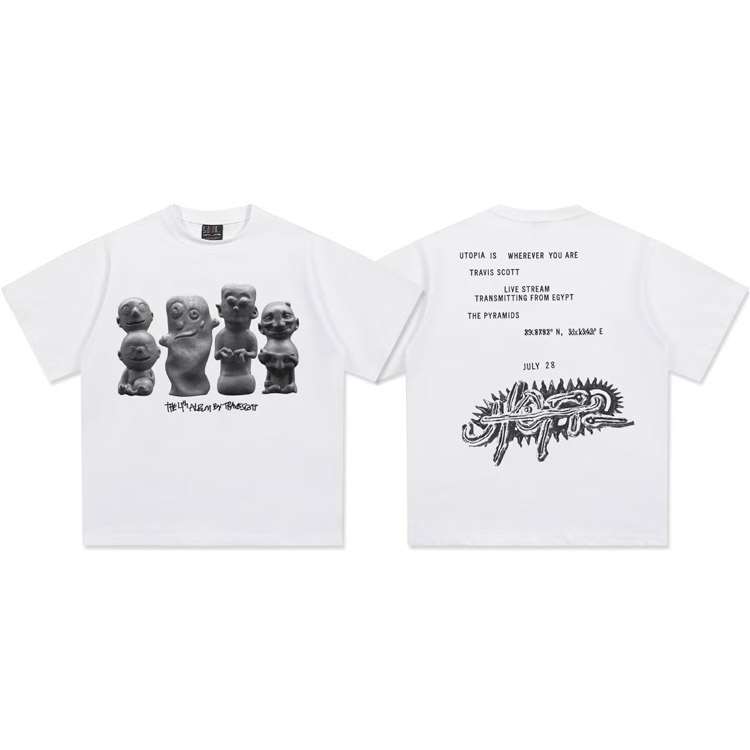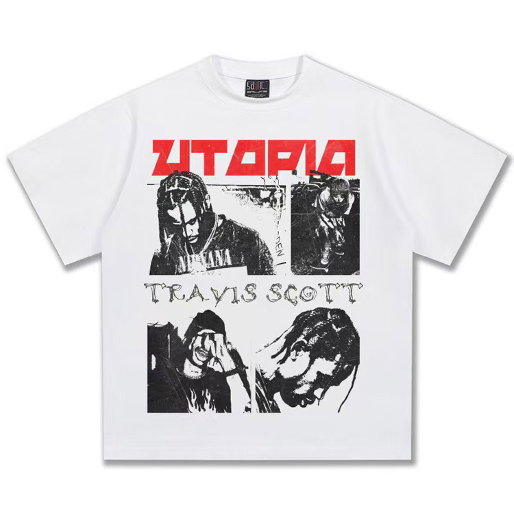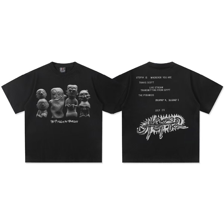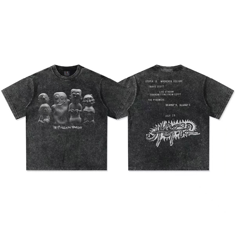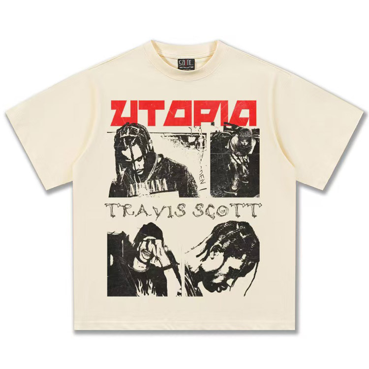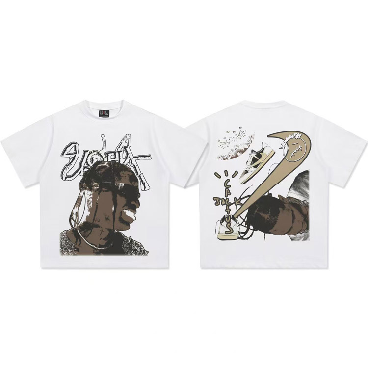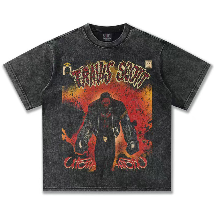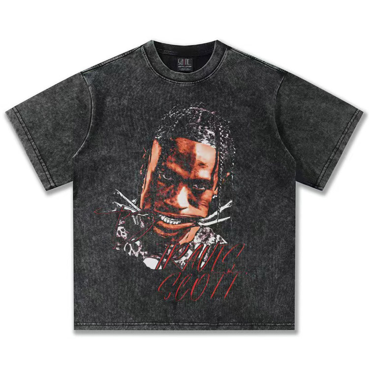 Travis Scott Vintage Pure Cotton Double-Yarn Short-Sleeved T-shirt-5097