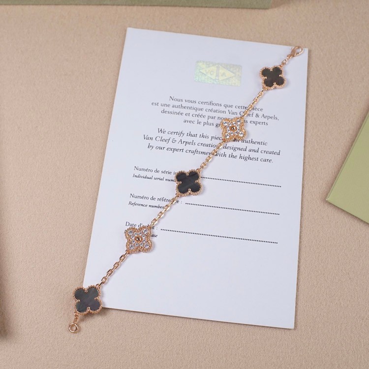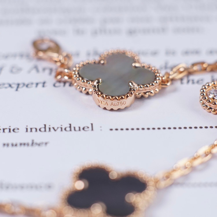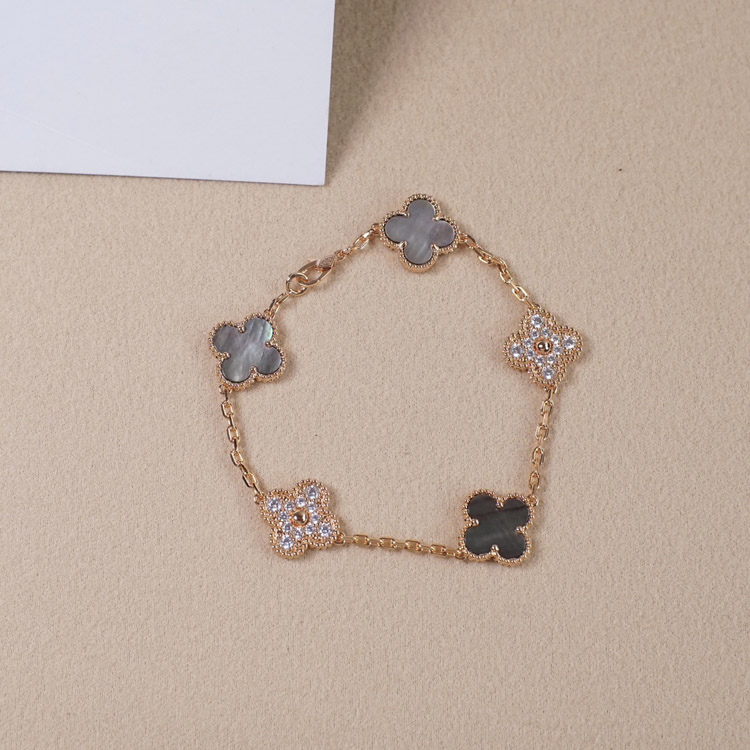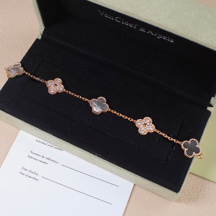 Home > Van Cleef & Arpels Grey Mother-of-Pearl Diamond Five-Flower Bracelet-3691